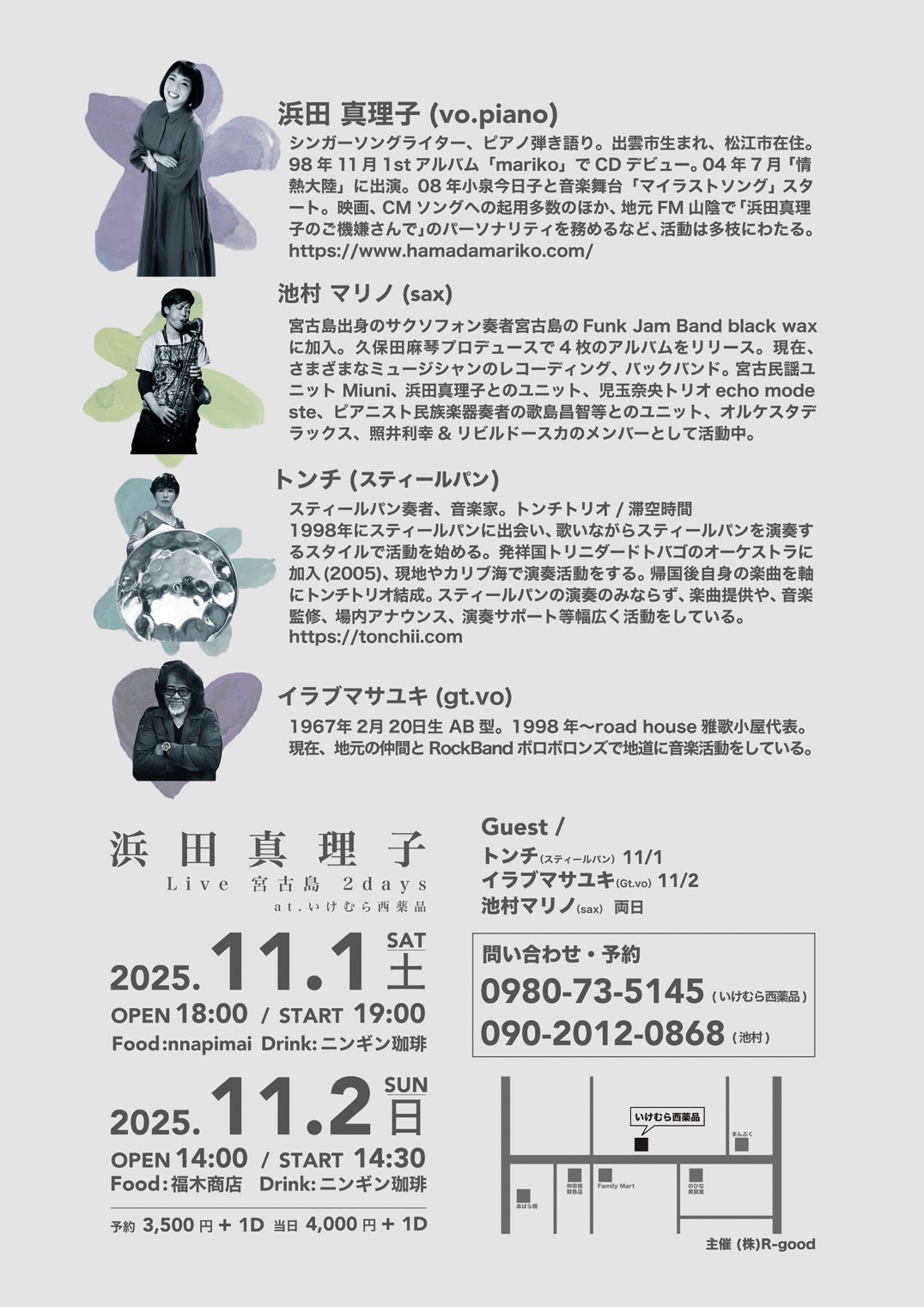 2025年3月20日(木・祝)浜田真理子 × 池村真理野 「MariMari Live」【徳島公演】